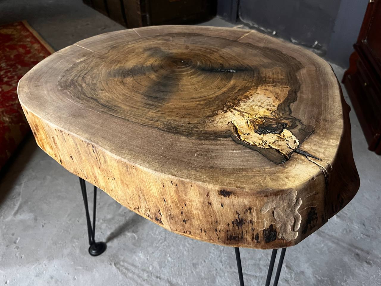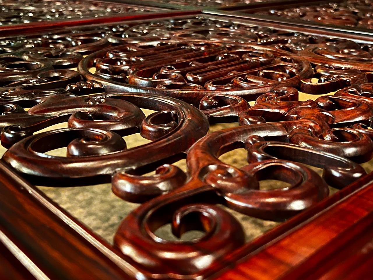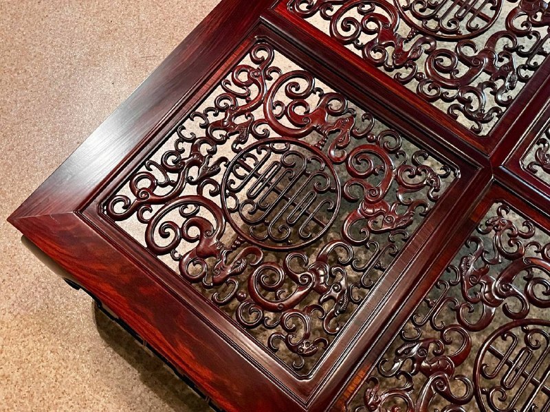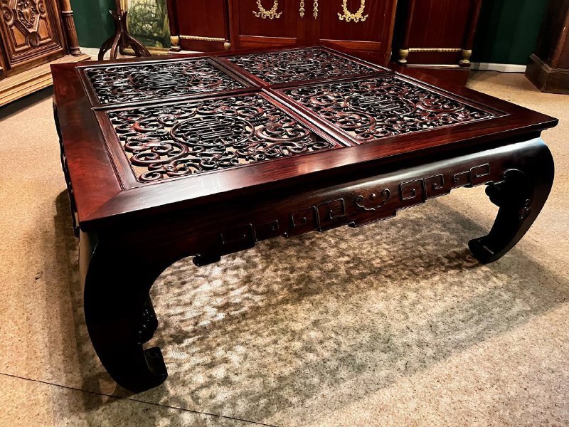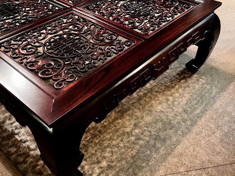 Столешница украшена ажурной резьбой, которая создает игру теней под ней.